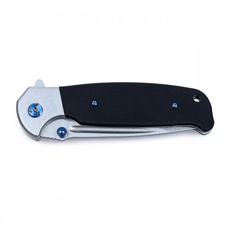 Рукоятка в модели Ganzo G7522 сделана с накладками из G10. Она может быть оранжевой (яркий и хорошо заметный цвет), черной (универсальная классика) или же темно-зеленой (популярна среди рыбаков и охотников). G10 представляет собою очень прочное композитное соединения стекловолокна с эпоксидной смолой. Этот материал существенно прочнее других видов пластика, но намного легче металла. К тому же, он стойко переносит влияние солнца, воды и прочих нежелательных для других материалов факторов.