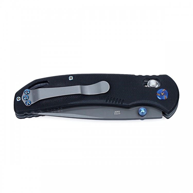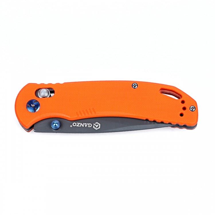 Материалом для ручки Ganzo G7533 послужил G10. Это композитный по структуре материал, который представляет собою изготовленный из стекловолокна и различных эпоксидных смол стеклопластик. К металлической основе рукоятки накладки привинчиваются большим осевым и двумя обычными винтами. Покупателям модель Ganzo G7533 доступна в трех вариантах цвета: черный, ярко-оранжевый и неброский зеленый. В каждом случае, на рукоятке размещается дополнительно клипса, а специально предусмотренное отверстие можно вдеть темляк.