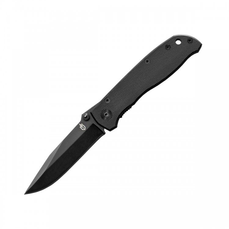 Лезвие ножа выполнено из нержавеющей стали и не нуждается в каком-то особом уходе. Его форма — drop-point с острым кончиком и полностью гладкой заточкой. Помимо того, лезвие полностью матовое и черное, поскольку металл подвергся оксидированию. Это позволило как усилить коррозийную стойкость ножа, так и использовать его в тактических целях. Ведь клинок не блестит на солнце, а темное покрытие металла — не стирается. Длина лезвия этого ножа составляет 8,3 см. Сложенный нож имеет длину 10,7 см, а в открытом виде, этот параметр увеличивается до 18,5 см.