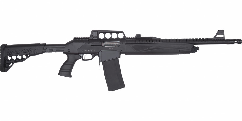 Ружье Tomahawk SA-22 Tactical отличатся от модели Tomahawk SA-15: наличие ручки для переноса, удлиненная база пикатинни, наличие целика, видоизменен ДТК и защитный кожух на ствол, а так же установлена большая прицельная мушка. Это недорогое полуавтоматическое ружье, при этом достаточно хорошего качества. Такое ружье можно применять как для защиты дома, так и для охоты, например на перепела, где не важна дальность и короткий ствол обеспечит хорошую площадь покрытия дробью.