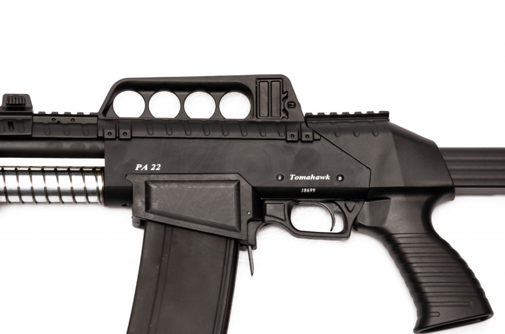 Ружье Tomahawk PA-22 Tactical отличатся от модели Tomahawk PA-15: наличие ручки для переноса, удлиненная база пикатинни, наличие целика, видоизменен ДТК и защитный кожух на ствол, а так же установлена большая прицельная мушка. Это недорогое помповое ружье, при этом достаточно хорошего качества. В первую очередь помповые ружья применяются для охраны из-за их безотказности, а можно использовать и на охоте, например на перепела, где не важна дальность и короткий ствол обеспечит хорошую площадь покрытия дробью.