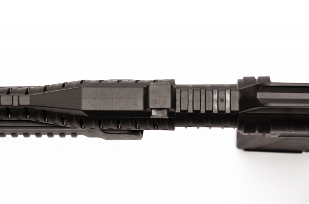 Главная особенность этого ружья - наличие съемного коробчатого магазина. Это позволяет сделать быструю замену нового магазина, либо зарядить старый. В сравнении с подствольным трубчатым магазином, съемный коробчатый имеет ряд преимуществ. Его можно зарядить в считанные секунды, даже не имея особых навыков, а с трубчатым все наоборот, и те кто уже заряжал их знают - это далеко не быстрый процесс. В отличии от подобных ружей (сайга, вепрь) в данной модели магазин вставляется без каких либо специальных зацепов, а используется обычное прямое шахтное примыкание. Простыми словами - приставить магазин к ствольной коробке и ударить по нему снизу. Патроны в магазине размещаются однорядно и помещается их до 6 шт (и один в ствол). Возможно использование патронов как обычных 12/67 и 12/70, так и магнум 12/76.