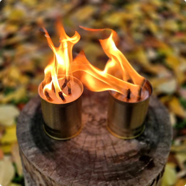 1. Открыть крышку, поджечь все фитили.