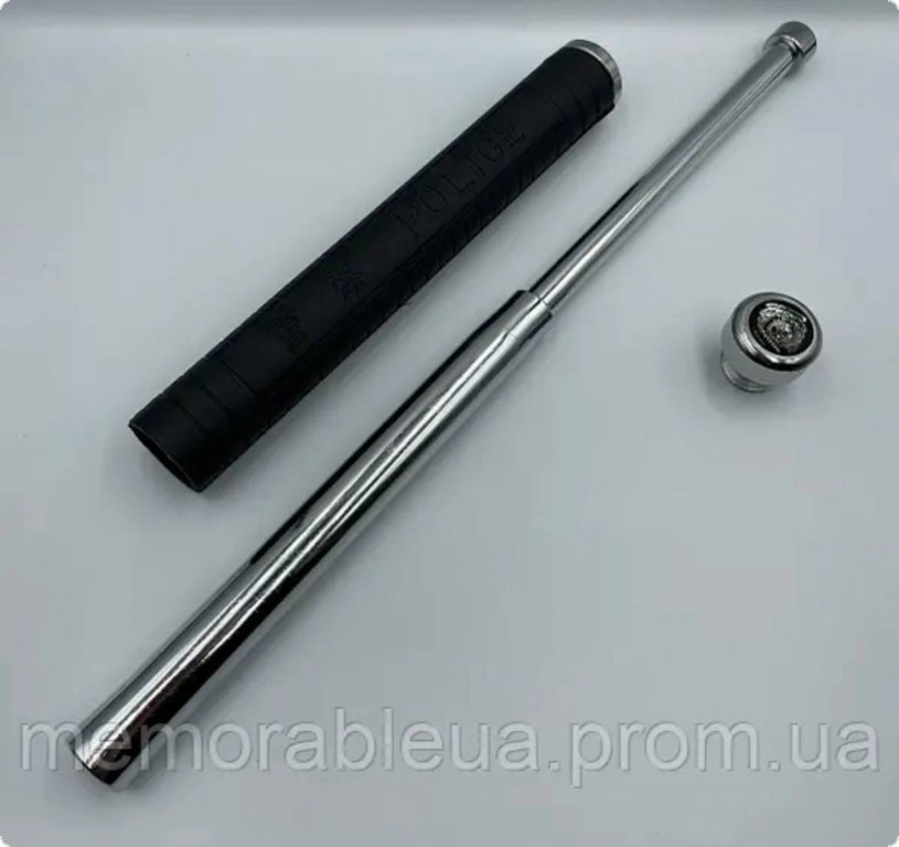 Телескопічна дубинка високої якості, що прослужить довгі роки завдяки матуріалу - якісна хромована сталь. Телескопічна палиця має хорошу ергономіку і високу чівпість, тому що має гумове руків'я. У комплекті є нейлоновий чохол, який можна вішати на пояс.