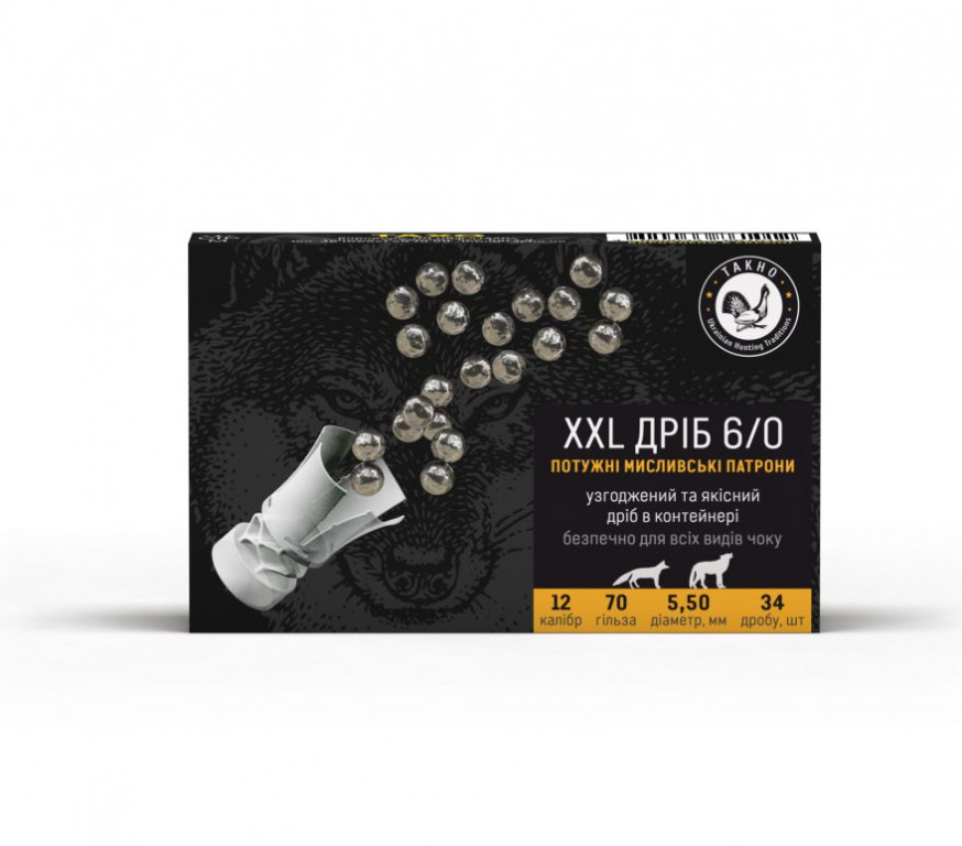 Патроны Тахо Дробь XL и XXL разработаны для охоты на средних животных (лиса, волк), при этом многие используют его и для самозащиты. Дробь диаметром 5.25 и 5.5 мм находится в контейнере, что обеспечивает достаточно хорошую кучность на больших дистанциях.