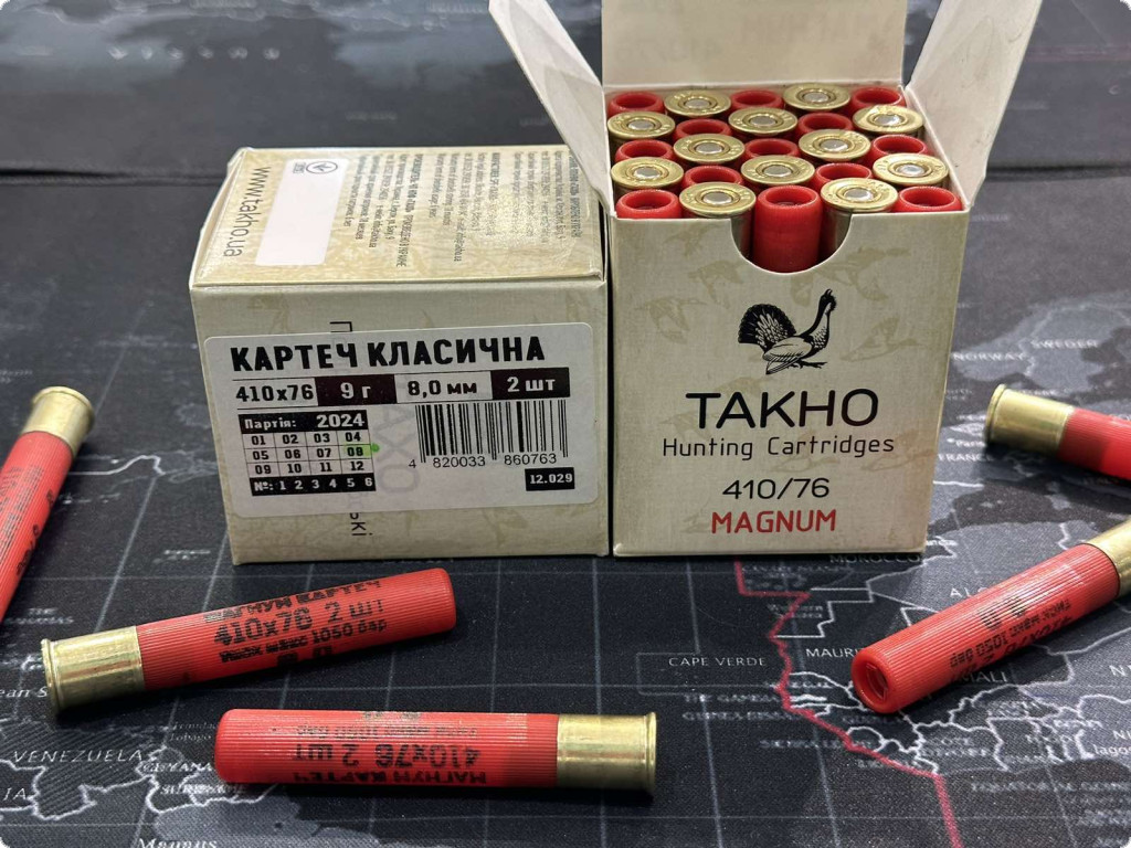 Патрон Тахо картечь предназначен для гладкоствольных ружей разных калибров, а применяется для охоты на крупных животных: волк, лиса, кабан и др. Картечь несет в себе достаточно большой урон и может применяться в охоте даже на расстоянии от цели до 80 метров. А сам патрон может применяться в охотничьих ружьях с любым дульным сужением.