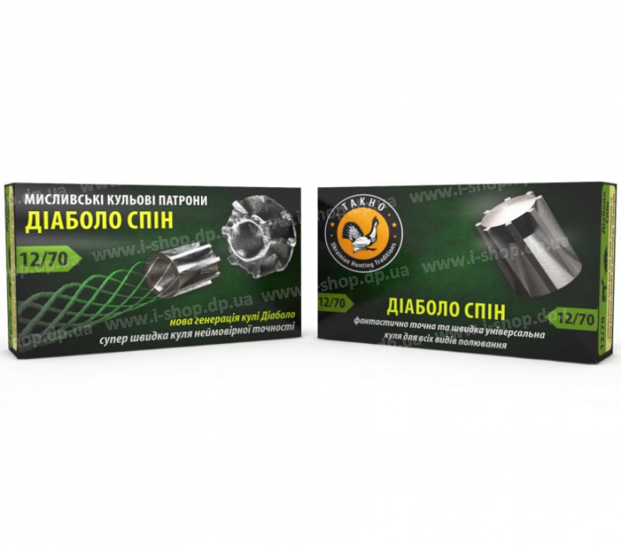 Диаболо Спин – новое поколение пули Диаболо для очень меткой стрельбы на дистанции до 120 метров. Начальная скорость выстрела – 450 м/с (540 м/с у 12/76). Фантастическая энергия выстрела. Очень точная, быстрая и поражающая. Рекомендуется для всех видов охот.