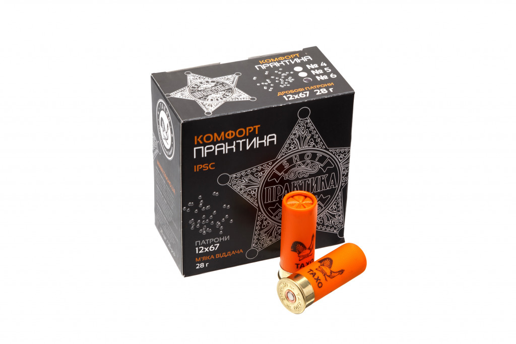 Супер патрон для практической стрельбы с навеской 28 г. Комфортная мягкая отдача и стабильный результат на средних и дальних дистанциях стрельбы. Патрон контейнерный и отлично подходит для упражнений со штрафными мишенями. Супер кучность позволяет попадать точно в цель на дистанциях до 40-ка метров. Ассортимент в номерах дроби - №4, №5, №6. Патрон имеет высоту 57 мм, что позволяет спортсмену уменьшить количество перезарядов на длинных упражнениях и сэкономить важные на соревнованиях секунды.