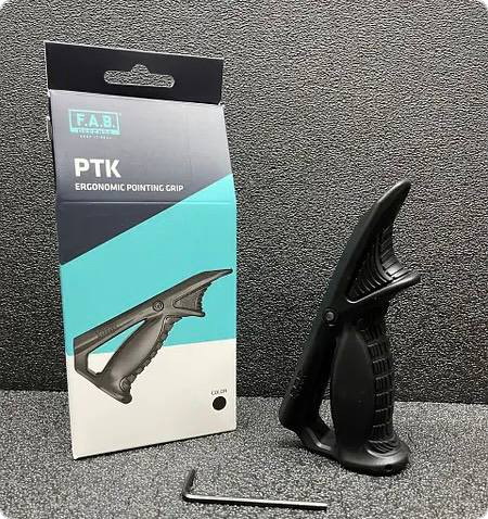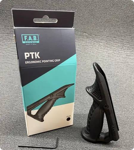 Переднє руків'я FAB Defense PTK забезпечує природний хват зброї, і так само, згідно з концепцією «інтуїтивної стрільби» - підвищує керованість зброї і знижує навантаження на м'язи рук стрільця.