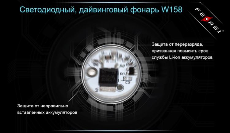 Также в модели Ferei W158 реализованы механизмы защиты от переполюсовки аккумуляторов, перезарядки и переразрядки аккумуляторов, предупреждения о скором исчерпании заряда.