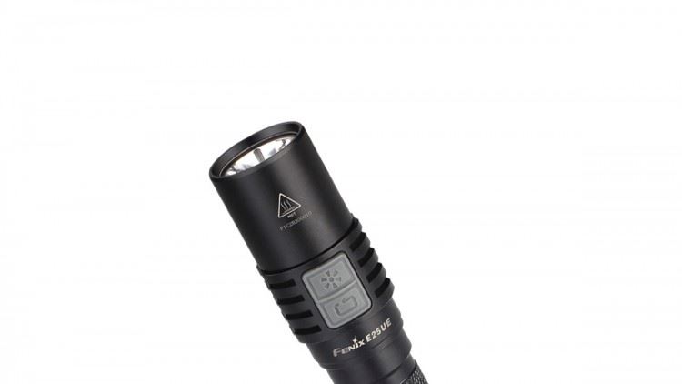 Переключаются все режимы двумя кнопками, которые находятся в головной секции корпуса. Управление реализовано на максимально понятном уровне и будет удобно всем пользователям. Также для Fenix E25UE предусмотрена возможность заблокировать включение. Она особенно полезна во время транспортировки, когда кнопки могут нажаться случайно.