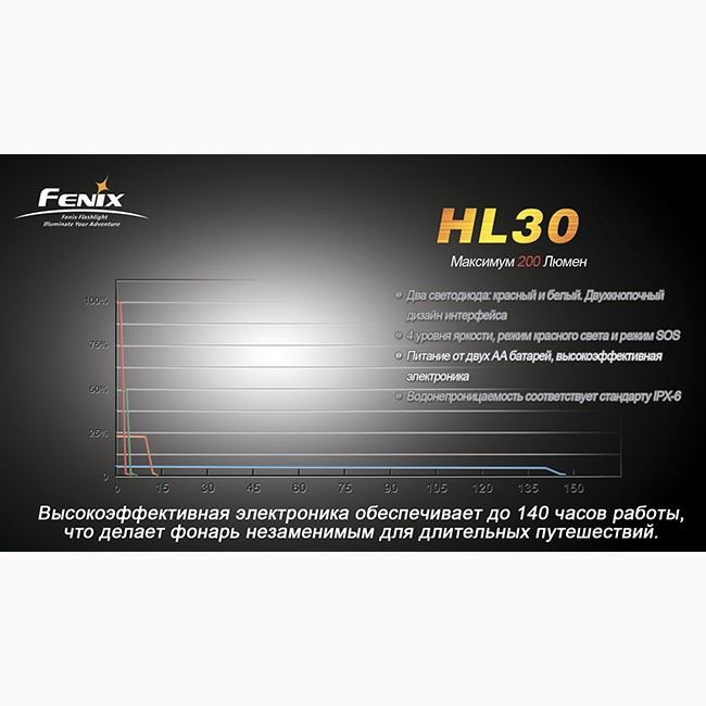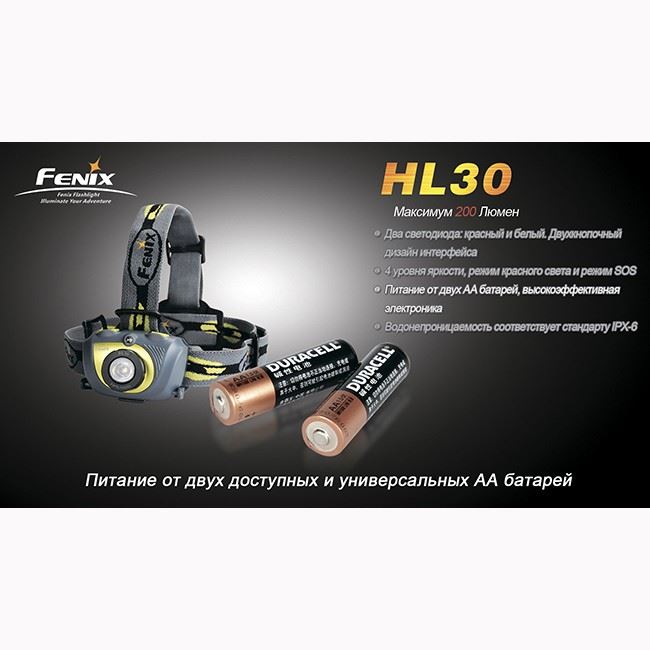 Фонарь Fenix HL30 – новый налобный фонарь от всемирно известной марки Fenix. Удобный, легкий и компактный фонарь, работающий всего на двух батарейках типа АА (пальчиковые) - на самых доступных элементах питания. Максимальная яркость фонаря - 200 люменов. При этом налобный фонарь может непрерывно работать 140 часов. При высокой мощности и выносливости, фонарь также отличается высокой стойкостью к повреждениям.
