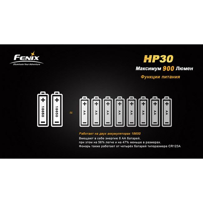 Чтобы пользоваться фонарем Fenix HP30 CREE XM-L2 было максимально удобно в любых условиях, в головной части устройства использован механизм наклона на угол до 60°. В этой модели нашли отражение и другие современные технологии, повышающие практичность и надежность Fenix HP30. В том числе, это индикатор уровня оставшегося заряда, возможность «запомнить» последний выбранный режим света, зашита от установки элементов питания в неправильном положении.