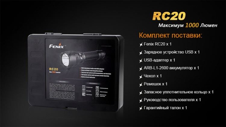 Гарантия: Производители определили гарантийный период для фонарей Fenix RC20 — 5 лет. Он начинает действовать в день совершения покупки.
