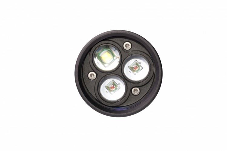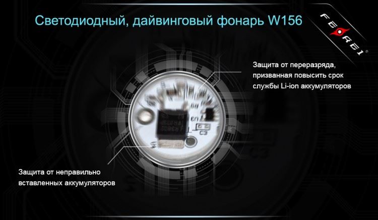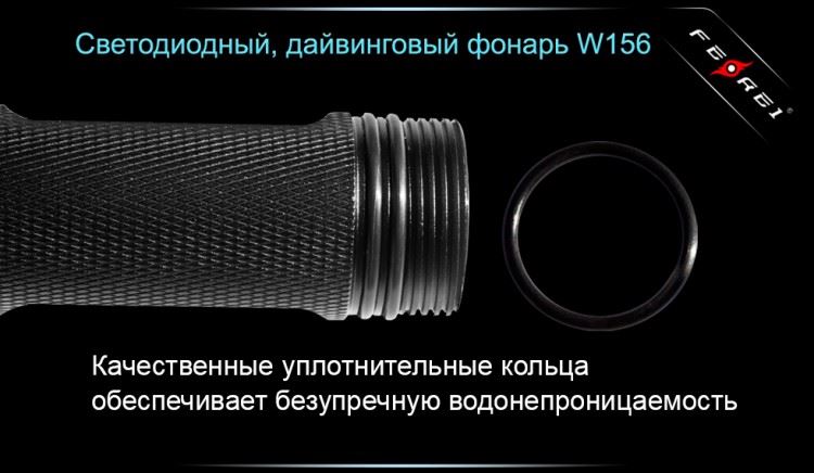 Многофункциональный компактный фонарь для дайвинга W156 от бренда Ferei. Модель имеет небольшие массу и габариты. В изделии используется высококачественный светодиод Cree XM-L, имеющий холодное белое свечение и обеспечивающий световой поток 1000 люмен. Также в фонаре W156 установлены два светодиода красного цвета CREE XP-E, дающие суммарный световой поток мощностью 500 люмен. Для обеспечения максимальной защиты от проникновения воды в модели используется двойное уплотнение резиновыми кольцами, которое обеспечивает работу фонаря на глубинах до 150 метров. Термозакаленное стекло обеспечивает защиту от высокого давления воды на большой глубине. Фонарь имеет цифровую регулировку яркости – по мере уменьшения заряда батарей специальный контроллер автоматически поддерживает стабильную яркость свечения светодиода. Система предупреждения сигнализирует о низком заряде батареи. Вращающийся магнитный переключатель на герконе обеспечивает надежную работу фонаря на любой глубине.