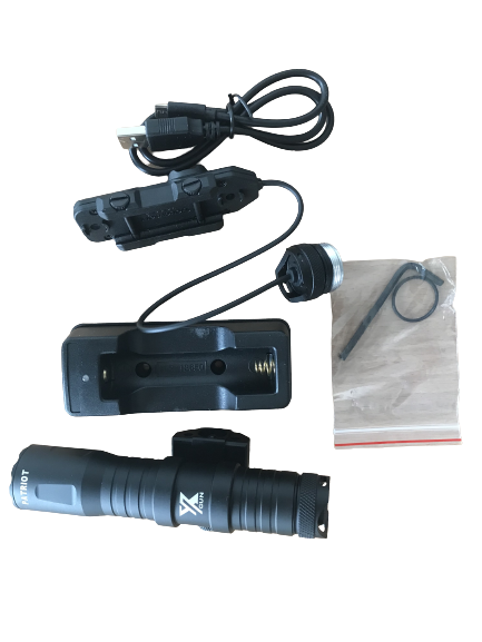 Ліхтар поставляється в комплекті з акумулятором, зарядним пристроєм з кабелем, виносною кнопкою з кріпленням на Picatinny та інструкцією.