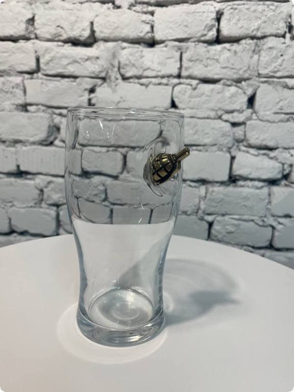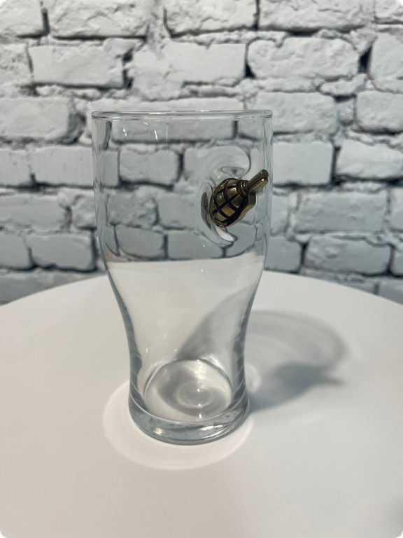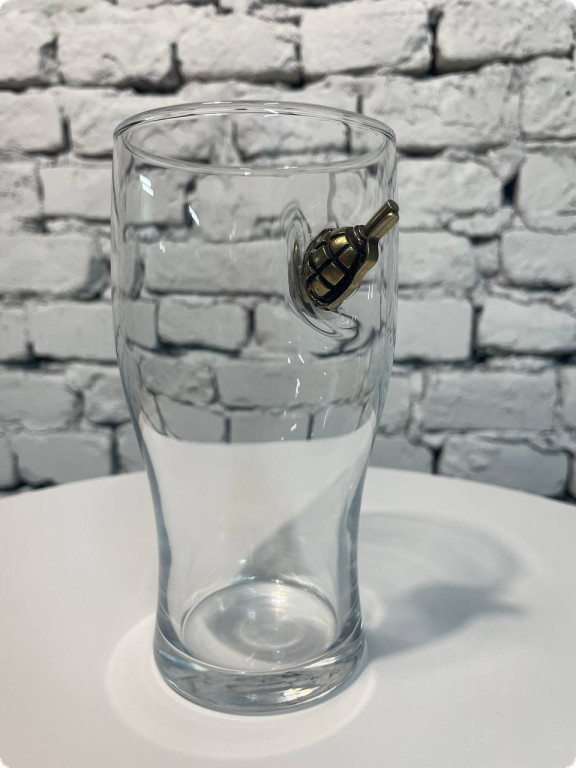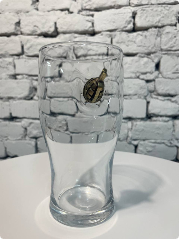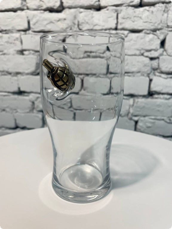 Пивний келих з інкрустованою гранатою-лимонкою із латуні