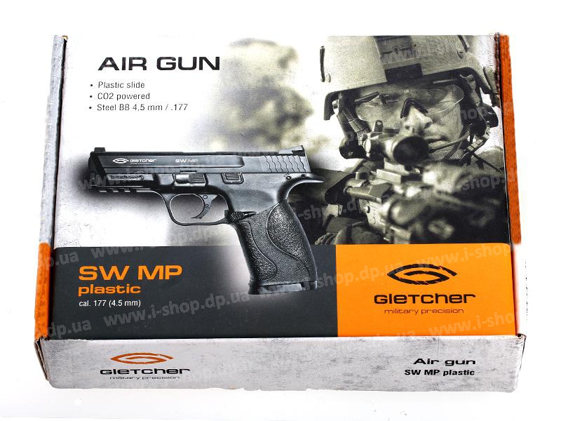 Лучше остановит свой выбор на пневматическом пистолете. Gletcher SW MP (пластик) – это пневматический пистолет марки Gletcher. Имеет много преимуществ, среди которых заметная схожесть с оригиналом. Рядом с названием Gletcher SW MP (пластик) имеется пояснение, это для того, что бы, вы не перепутали его с идентичным пистолетом, отличием которого является не пластиковый, а металлический затвор. Произведена эта модель в США. Он имеет стандартный калибр и распространённую скорость пули сто двадцать м/с. Gletcher SW MP (пластик) баллонный, стоит он не дорого и баллоны к нему так же имеют не значительную цену, это весьма значительный плюс этого пневматического пистолета.