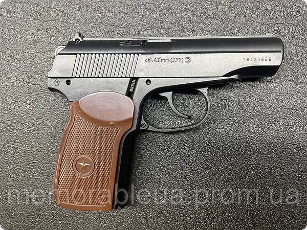 Дуже легкий та дешевий, має вигляд справжнього ПМ, але для придбання даного товару не потрібно отримувати дозвіл. Він дуже зручно лежить в руці та має високі стрілкові дані. Магазин пістолета вбудований в корпус і вміщує 16 кульок. Це зручно: його не втратиш і не зламаєш. Вдала модель за таку ціну!