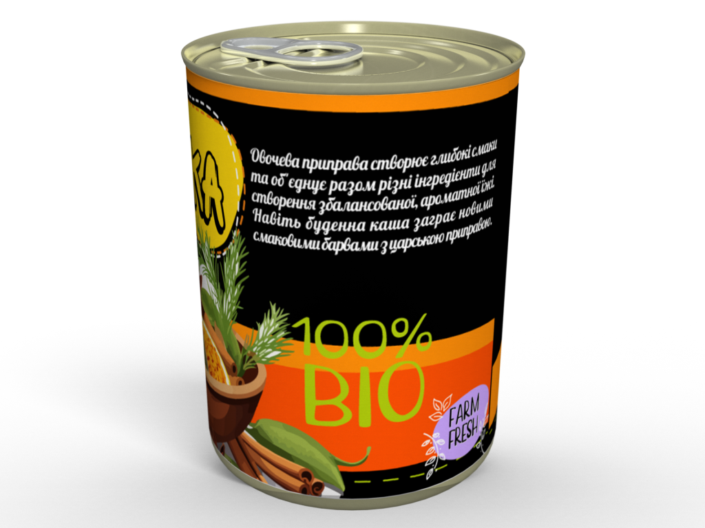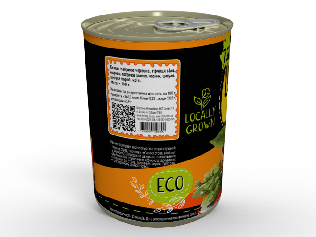 Склад: червона паприка, біла гірчиця, морква, зелена паприка, часник, цибуля, цибуля-порей, кріп.