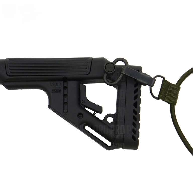 Легка вага, продуманий дизайн без виступаючих частин, пістолетне руків'я з містким контейнером для зберігання елементів живлення роблять цей приклад одним з найкращих. Є два слота для кріплення QD антабки. Приклад складається на ліву сторону, що дозволяє заощадити місце при зберіганні і транспортуванні.