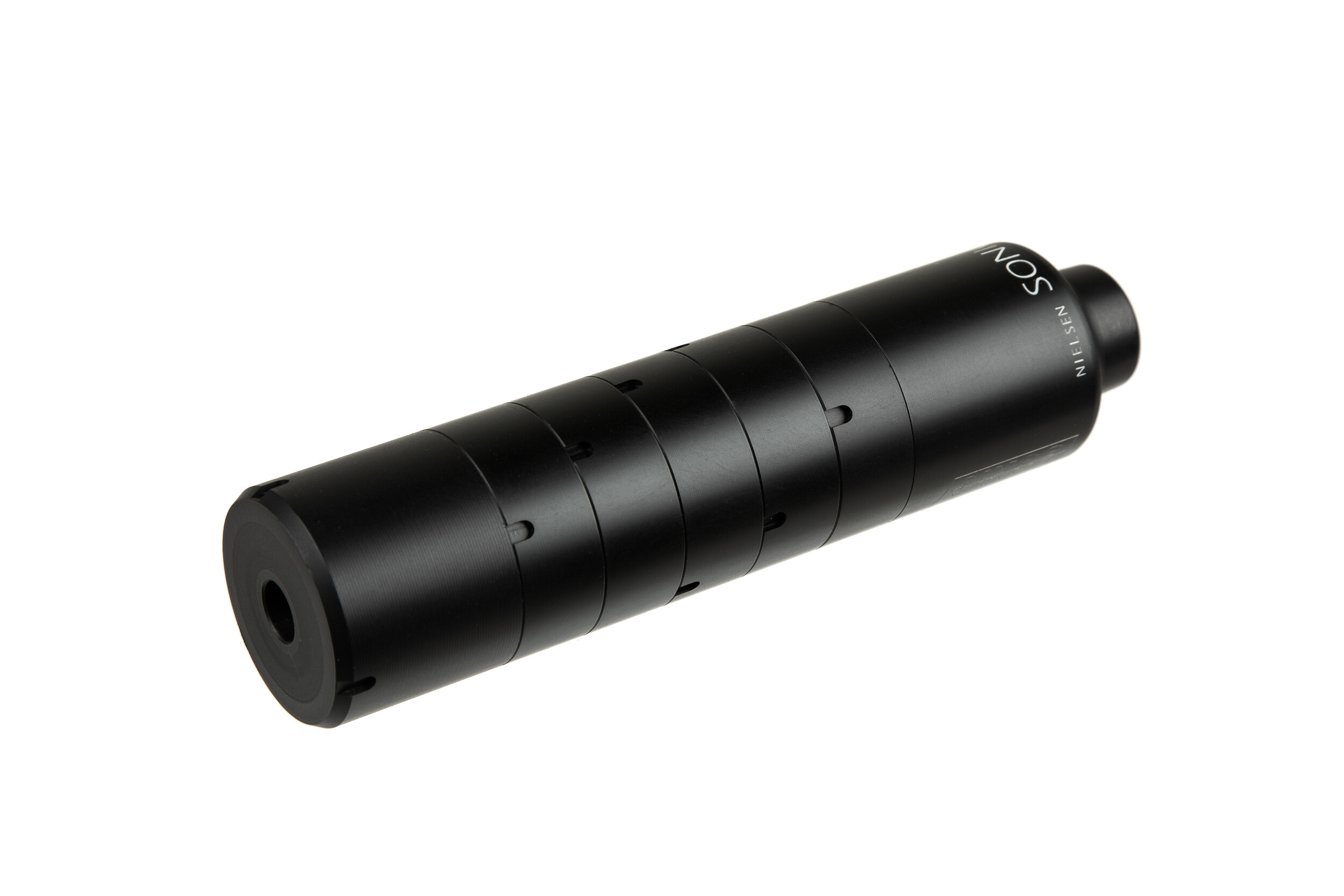 Саундмодератор Sonic 40 FRITZ 5/8-24 Max 9 неинтегрированный (устанавливается спереди ствола), предназначен для карабинов калибра 9х21 с резьбой 5/8-24. Саундмодератор имеет диаметр 40 мм и вес всего 250 г. Спроектирован и изготовлен в Дании. Предупреждения и рекомендации: Не стреляйте с глушителем пока он слишком горяч. Перед установкой и разборкой смажьте заднюю часть глушителя с помощью WD40 (или подобным). Особенно если глушитель используется во влажную погоду. Всегда нужно дать глушителю высохнуть, прежде чем помещать его на хранение. При необходимости очистите глушитель, используя только масло и тряпку. Избегайте использования щелочных моющих средств, ультразвуковых моющих средств или крема для щеток и скраба. Рекомендуется регулярно отсоединять все модули и наносить небольшое количество новой резьбовой смазки.