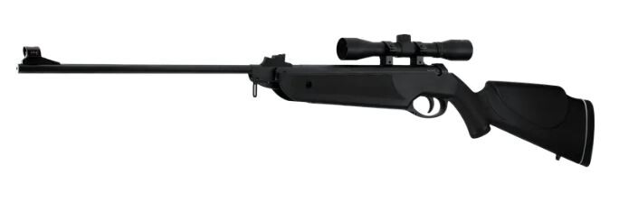 Hämmerli Black Force 400 Combo, легкая и простая в обращении пружинно-поршневая пневматическая винтовка, поставляемая в комплекте с высококачественным прицелом с 4-кратным увеличением. Легкая, небольшая винтовка – отличное приобретение как для новичков, так и для опытных стрелков. Энергия 16 Дж позволяет достигнуть начальной скорости пульки до 249 метров в секунду. Стальной нарезной ствол с типом взведения «перелом ствола». Black Force 400 Combo оснащена как механическим целиком, регулируемым по вертикали и горизонтали, и оптоволоконной мушкой, так и оптическим прицелом 4х32 (входит в комплект). Винтовка оснащена автоматическим кнопочным предохранителем, который срабатывает каждый раз при взводе винтовки, блокируя спусковой механизм и предотвращая случайный выстрел. Прорезиненный затыльник приклада уменьшает скольжение приклада во время выстрела, что повышает точность и амортизирует отдачу, снижая нагрузку на плечо. Текстурированная поверхность ложа обеспечивает надежный хват и предотвращает скольжение винтовки. Благодаря антабкам можно закрепить ремень, что освободит руки и сделает переноску винтовки более комфортной.