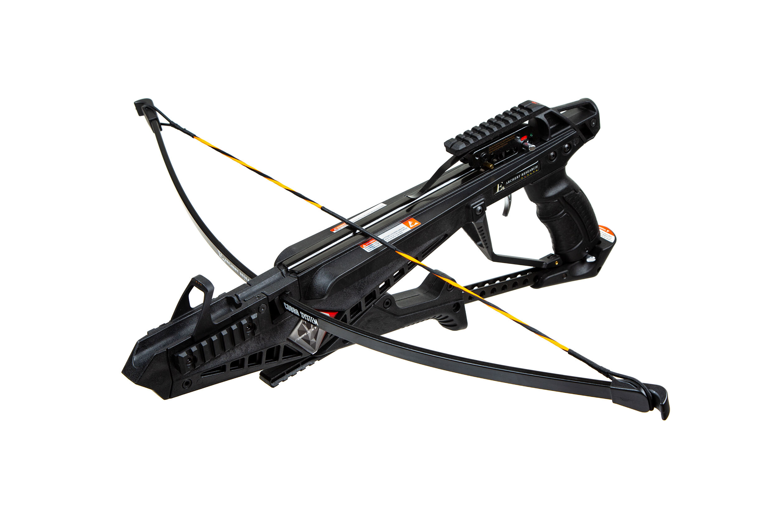 Рекурсивный арбалет от Poe Lang модель Cobra System R9 с усиленной дугой и силой натяжения в 90 футов. Сила натяжения 41 кг. Ложе выполнено из алюминия, пистолетная рукоять из пластика. Коллиматорный прицел или оптический прицел можно установить на интегрированную планку Пикатинни. Взведение арбалета происходит при помощи запатентованной системы подствольного рычага (Cobra System). Модульная система креплений приклада и дуги на пинах, позволяет быстро собрать/разобрать арбалет, или заменить дугу. В комплекте: защитные очки шесть 7,5" углеродных болтов (стрел) воск для тетивы.