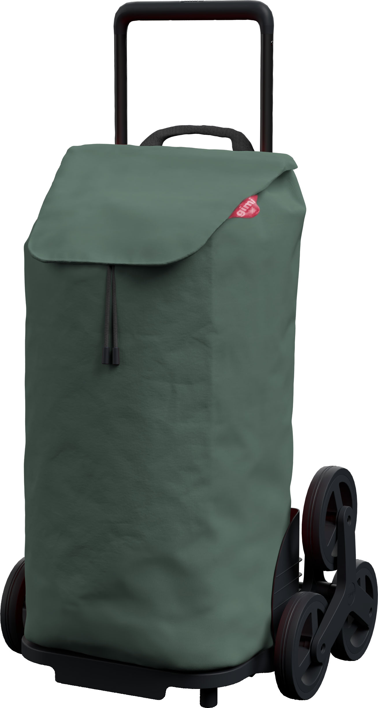 Оновлена модель сумки-візка Gimi Tris Green (168424), шасі якої оснащене двома блоками із трьох коліс, які дозволяють швидко долати сходи, бордюри та інші перешкоди під час руху вгору або вниз. Сумка-візок Gimi Tris 52 Green (168424) розрахована на об'єм 52 літри. Матеріал сумки із водозахисним покриттям, всередині розташована кишеня-гаманець на блискавці для зберігання дрібних предметів. Зручна широка горловина стягується шнуром із фіксатором і має захисний клапан.