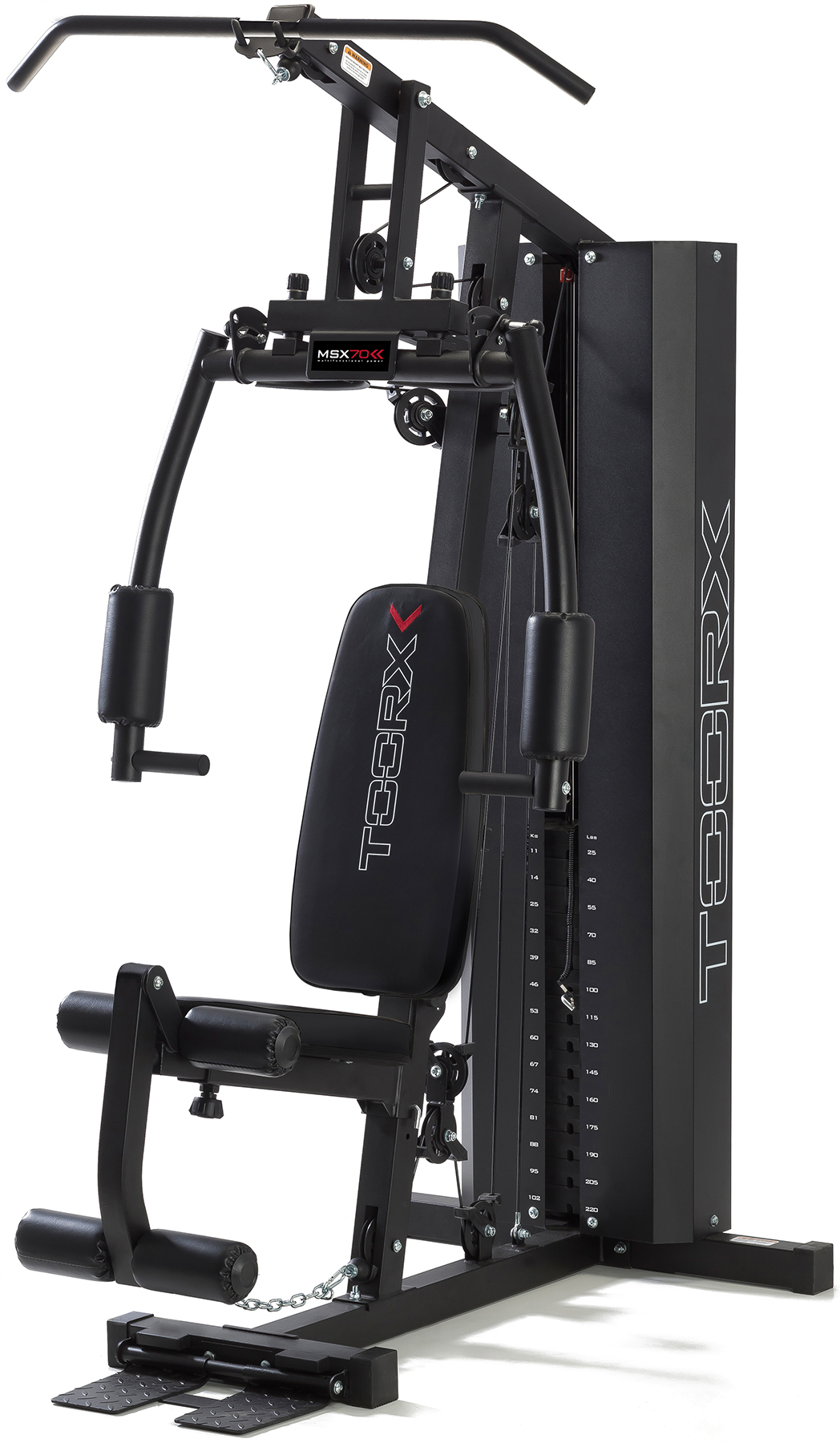 Мультистанція Toorx MSX 70 – це сучасний багатофункціональний тренажер, який об’єднує професійний рівень навантажень із компактністю для домашнього використання. Завдяки міцному стальному каркасу та 102 кг вантажного стека в захисному кожусі, вона гарантує довговічність і стабільність навіть при інтенсивних силових сесіях.