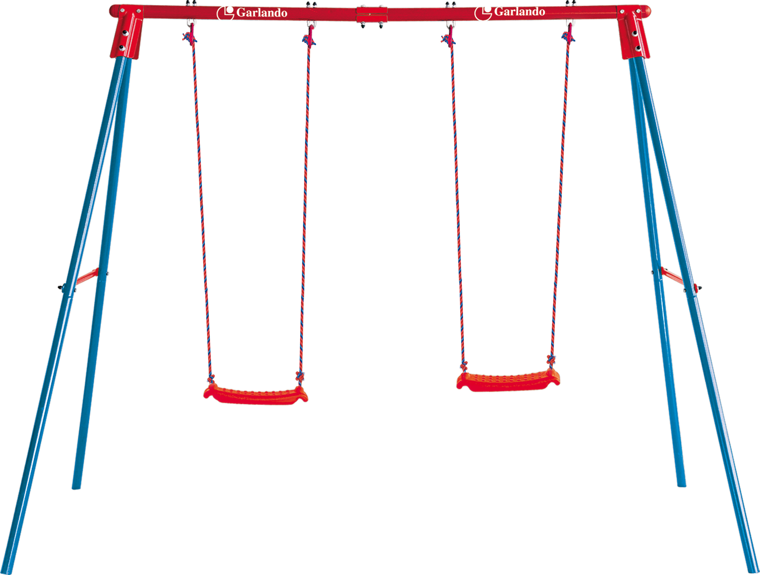 Гойдалка на металевих опорах Garlando Candy подвійна (ALT-12) гарантує безпечне та веселе проведення часу для двох дітей віком від 3 до 10 років одночасно. Конструкція виготовлена з оцинкованих труб й використовуються нержавіючі болти з поліефірним порошковим покриттям, а відсутність зварних швів гарантує максимальну безпеку. Пластикове сидіння розміром 42x15 см кріпиться на регульованій по висоті мотузці. Для стабільної фіксації до землі передбачені кілочки. Максимальне навантаження до 50 кг.