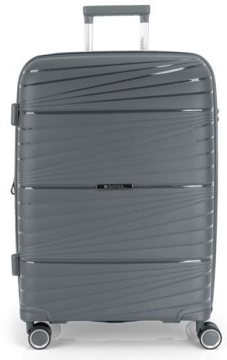 Корпус валіз Gabol серії Kiba виконаний з міцного та довговічного матеріалу - поліпропілену, що дуже важливо для валіз, які перевозяться в багажних відділеннях. Внутрішній об'єм розділений перегородкою на два відділення та має ремені для фіксації речей усередині. Валіза обладнана розширювальним клапаном, який дозволяє збільшити об'єм до 80 літрів.