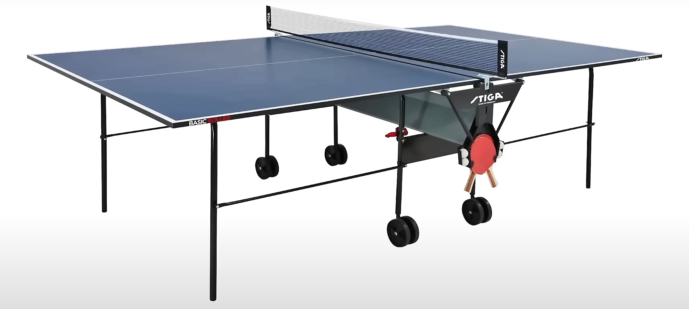 Тенісний стіл Stiga Basic Roller призначений для гри в настільний теніс у закритих приміщеннях. Ігрова поверхня виконана з високоякісного ДСП товщиною 16 мм із меламіновим покриттям. Каркас та ніжки виготовлені з металевих трубок діаметром 25 мм із порошковим фарбуванням. Чотири здвоєні транспортувальні колеса діаметром 125 мм, два з яких обертаються на 360°, суттєво полегшують переміщення столу за потреби. Тенісний стіл оснащений сіткою та тримачем для ракеток і м'ячів. Складана конструкція з автоматичною системою блокування забезпечує зручне зберігання столу в домашніх умовах. Піднявши одну з половинок стільниці, тенісний стіл можна використовувати як для одиночних тренувань, так і для гри людьми з обмеженими можливостями. Стільниця забезпечує хороший відскок м'яча, а покриття антивідблиску дозволяє грати довше, не напружуючи очей.