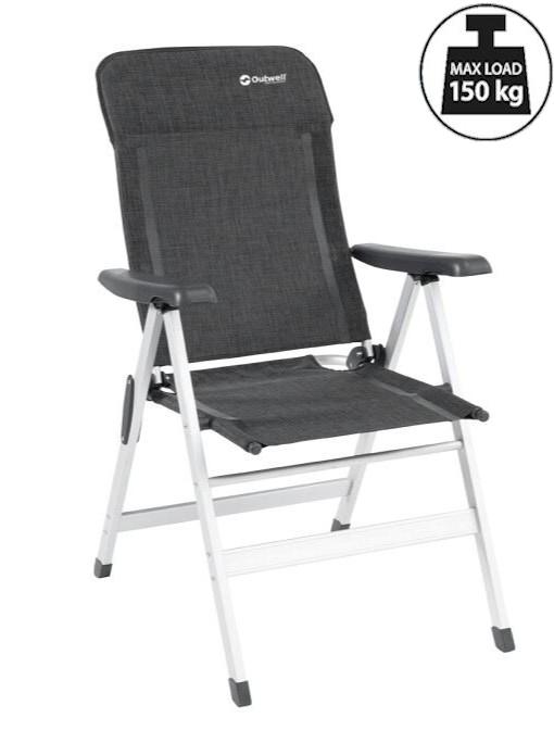 Крісло кемпінгове Outwell Ontario — комфортне та функціональне кемпінгове крісло, поєднує міцну алюмінієву раму з тканиною Textiline, що дихає. Завдяки фіксованим положенням спинки на вибір й ергономічним підлокітникам воно забезпечує максимальний комфорт під час відпочинку біля вогнища чи в саду. Міцна конструкція та компактний розмір у зібраному вигляді роблять Ontario ідеальним супутником у будь яких виїздах на природу.