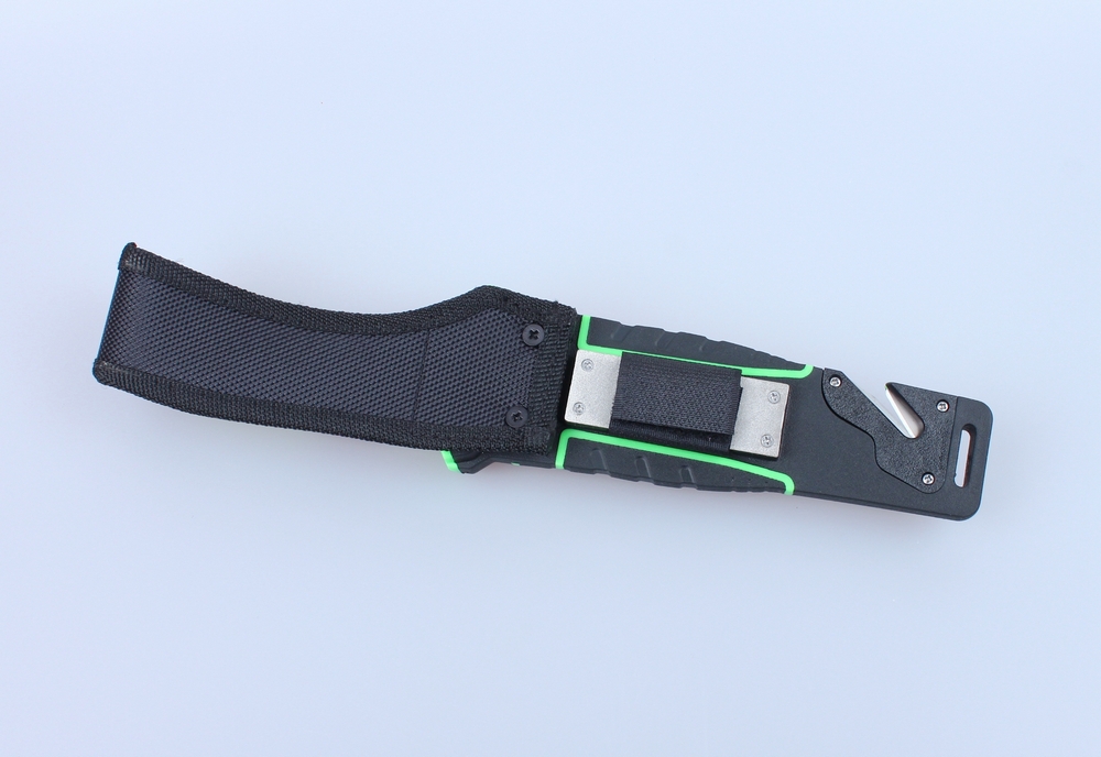 В одному стилі з ручкою виготовлені і піхви для Ganzo G8012. Вони можуть кріпитися на поясі або ж бути прибраними в рюкзак. Виготовлені піхви з пластикових, а також нейлонових елементів. Вони повністю закривають лезо ножа і частково рукоятку. Також в піхви можна протягнути шнур для кріплення на рюкзаку та страхування від втрати ножа. З боку клинка, в піхви вбудований гострий стропоріз з двох перехрещених лез, з допомогою якого можна розрізати мотузки в екстреній ситуації. Якщо ж під час поїздки наприроду знадобиться підточити ніж, автори цієї моделі пропонують скористатися вбудованою в піхви алмазної стругачкою. Вона підходить для гладко заточеного ділянки клинка. Ще один додатковий аксесуар — це кресало, вынимающееся з піхов. На додаток до всього, в рукоятці ножа розміщений склобій — невеликий елемент в торцевій частині ручки, про призначення якого говорить його назва.