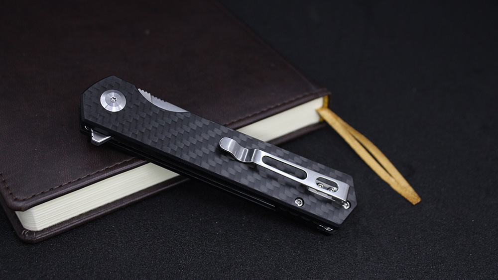 Рукоятка складного ножа Firebird FH11-CF складається лише з пари компонентів. Це 2 сталевих лайнера, що лежать в основі і забезпечують міцність конструкції і накладки з двох сторін із зносостійкого матеріалу G10 та зовнішнім шаром вуглецевого волокна (Carbon Fiber). Вони не тільки роблять дизайн ножа оригінальним, а й за рахунок якісного складання і ретельної підгонки комплектуючих дозволяють з максимальним комфортом утримувати ніж практично будь хватом.