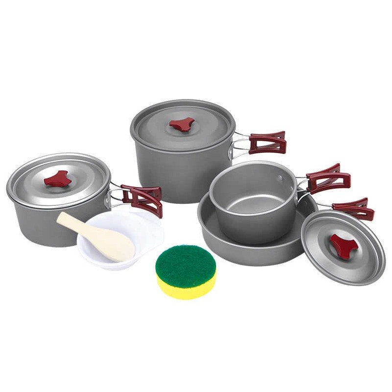 Набір посуду включає в себе чотири ємності, ополоник, ложку, губку для миття посуду. Є також чохол для зберігання і перенесення виробів. Дуже зручний комплект для туристичних цілей. Сюди увійшли: дві каструльки, казанок, а також сковорідка. Всі ці предмети можуть бути компактно складені один в один, і не будуть займати багато місця в рюкзаку. Комплект допоможе зробити процес кулінарії на природі більш простим і швидким. Рукояті посуду можуть запросто складатися, що сприяє ще більшій зручності. Комплект відмінно адаптований для експлуатації в польових умовах.
