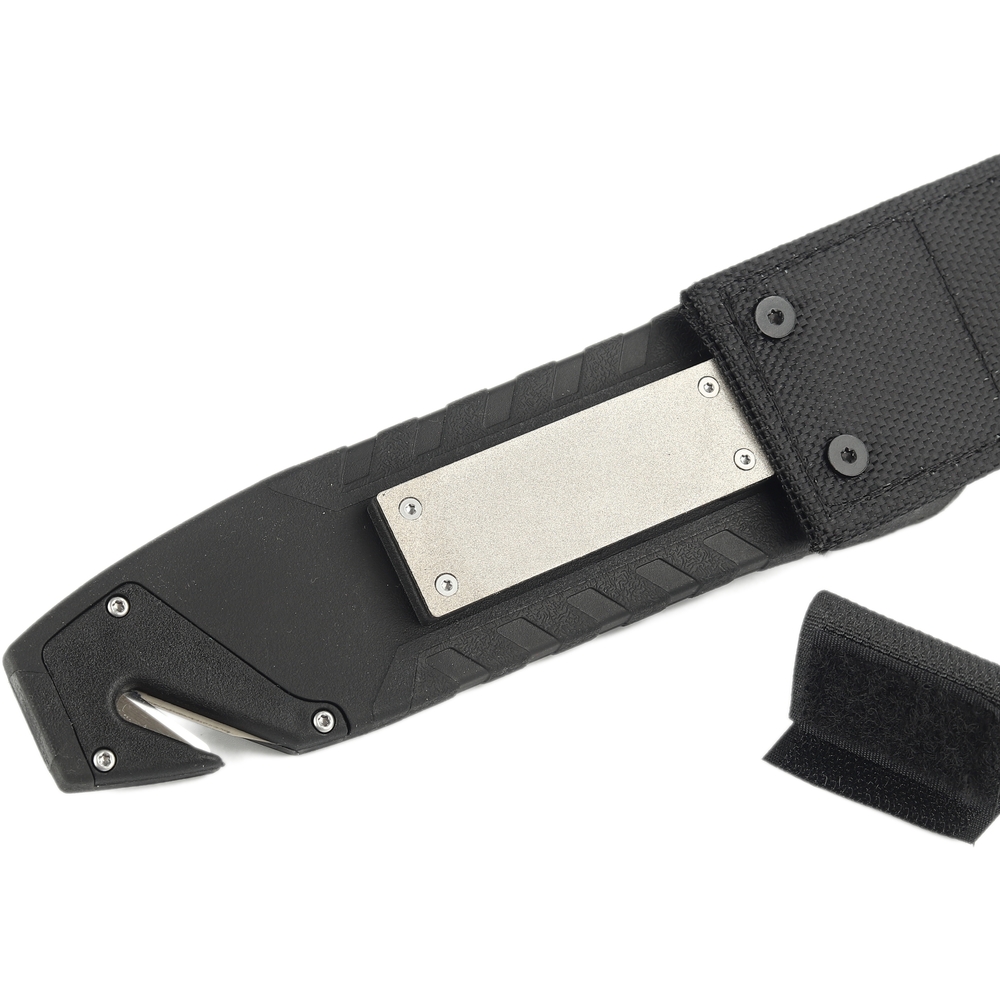 У комплект з ножем входять фірмові піхви, які мають доповнення у вигляді невеликого кресала, стропоріза і компактної пластини, що виконує функцію Точила, якщо під рукою немає повноцінного точильного каменю. Модель Ganzo G8012V2-BK має отвір під темляк і продається разом з паракордом. Це синтетична мотузка з особливим плетінням, яке підвищує міцність матеріалу. Темляк можна використовувати як додатковий варіант для фіксації вироби на поясі або сумці.