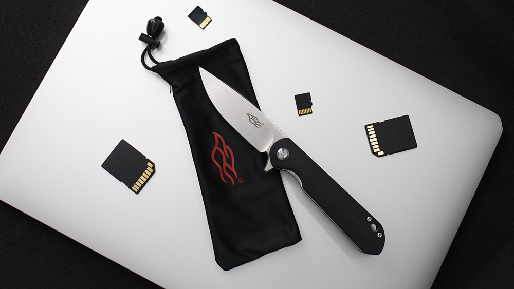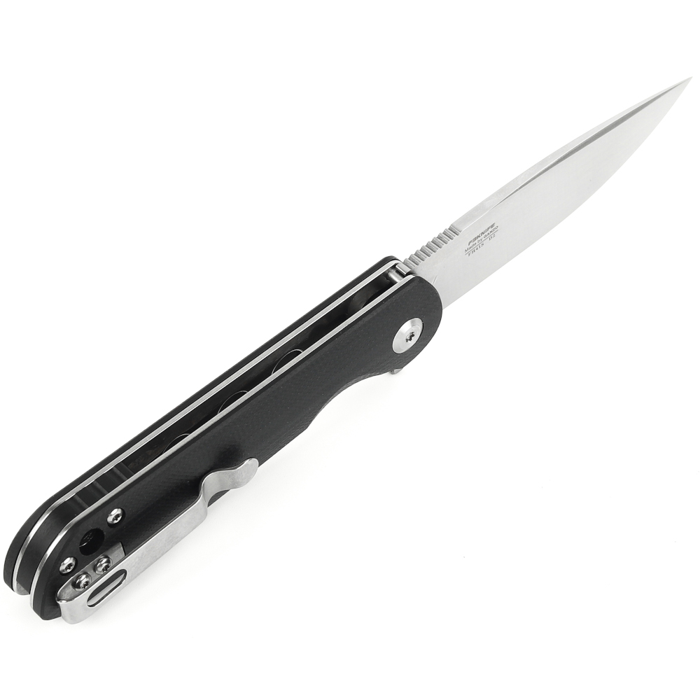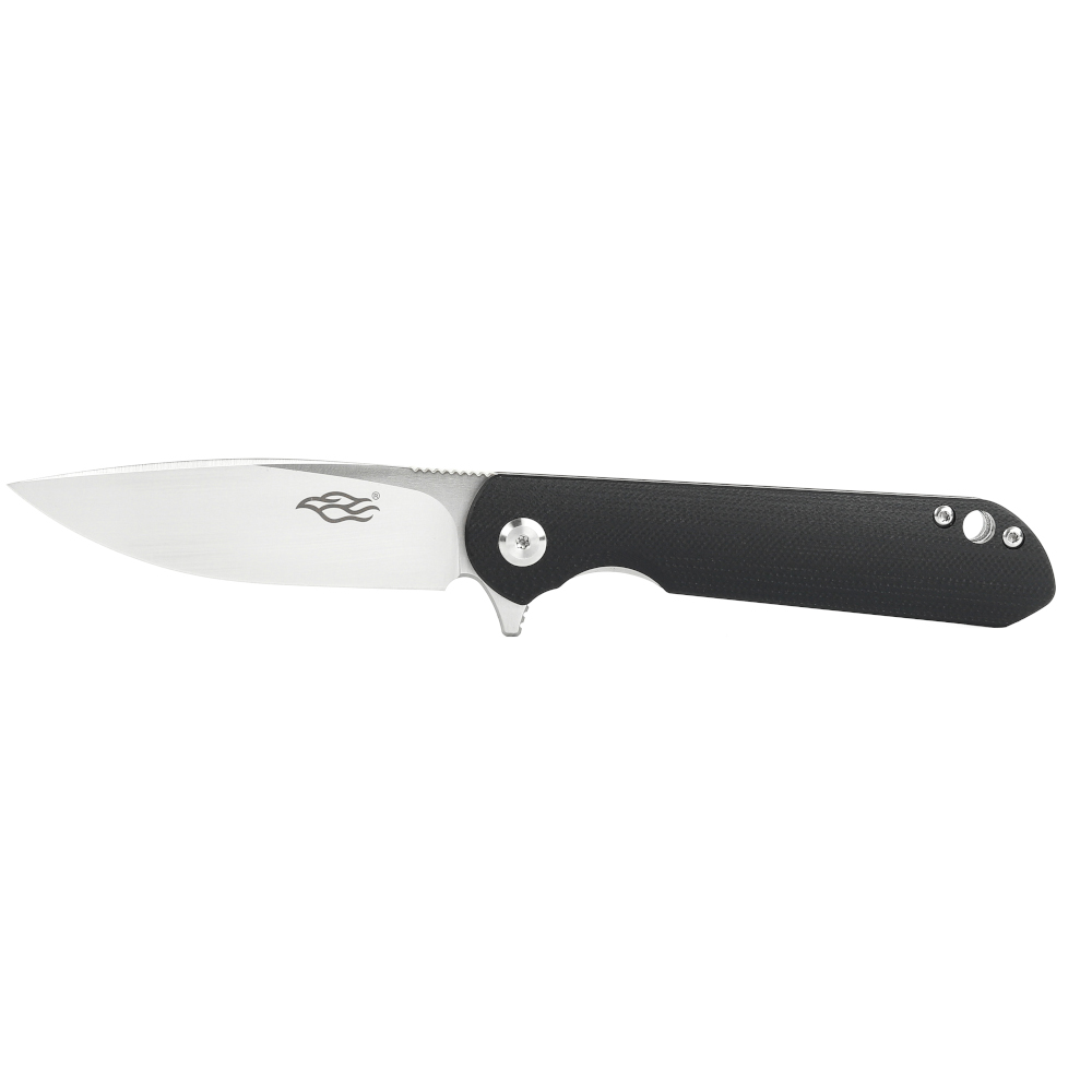 Лезо Firebird FH41S-BK виготовлено з інструментальної сталі D2. Даний сплав-гарант ефективності і довгого терміну служби виробу, завдяки збалансованому складу. Вміст хрому в сталі коливається в межах 11-13%, що робить матеріал стійким до появи корозійних плям при попаданні на клинок води або впливі агресивних середовищ. Головна перевага даної сталі-тривале утримання заточування навіть при інтенсивних навантаженнях, включаючи роботу з такими щільними матеріалами, як деревина. При цьому клинок не деформується і не вимагає багато часу і сил для заточування — для цього підійде звичайний точильний камінь. Для відкриття ножа досить натиснути пальцем на сталевий плавник, після чого клинок намертво фіксується для подальшого безпечного використання.