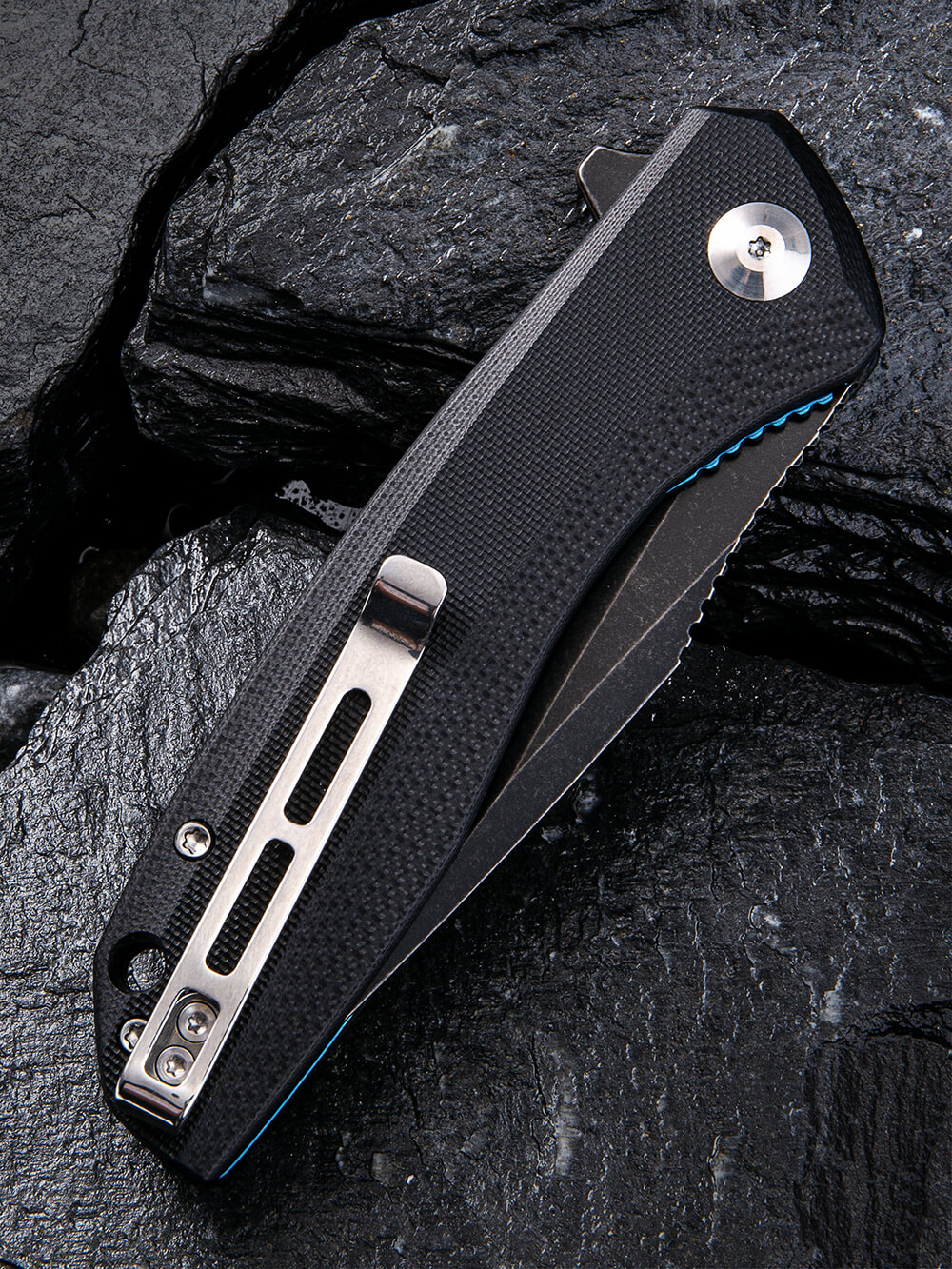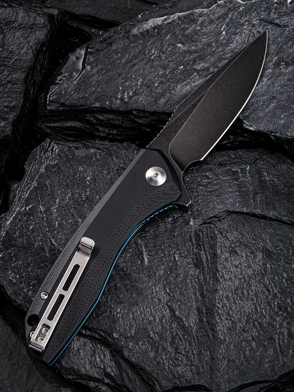 Лезо має форму drop point, універсальну, тому його раціонально застосовувати у туризмі, активному відпочинку. Такий клинок однаково ефективно справиться і з нарізуванням, і з розколюванням. В основі – сталь марки 9Cr18MoV із твердістю близько 60 одиниць за шкалою Роквелла. Такий показник вважається дуже високим для ножової продукції.