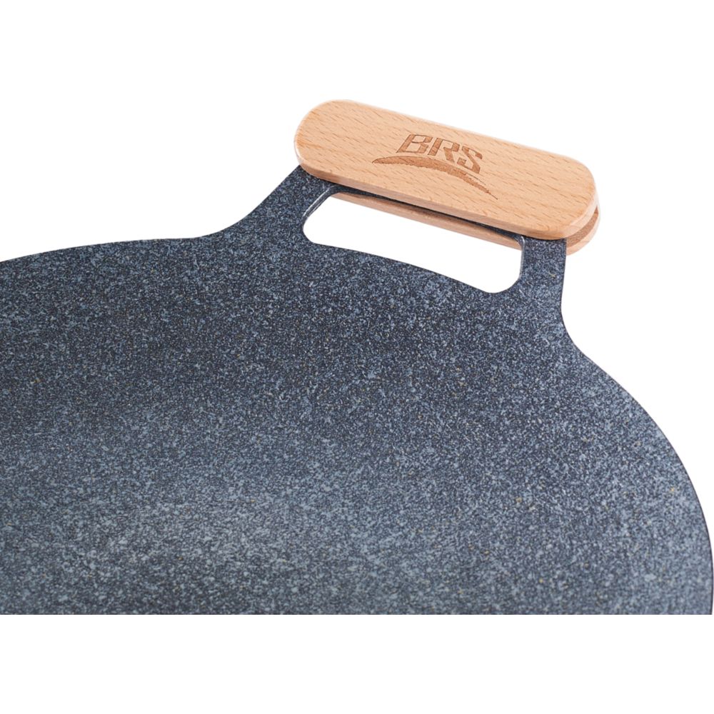 Сковорода BRS-27 має діаметр 34 сантиметри при загальному розмірі 45 х 7 сантиметрів (із урахуванням ручок). У якості основного матеріалу використовується нержавіюча сталь, яка не надає їжі стороннього запаху та присмаку під час готування, а також відрізняється невибагливістю у догляді: достатньо сполоснути сковороду після використання під чистою, проточною водою та протерти губкою. Посуд має потовщене дно, що дозволяє рівномірно розподілити жар по всій поверхні, а антипригарне покриття у вигляді харчового медичного каменю запобігає пригоранню їжі. За допомогою даного посуду можна приготувати більшість популярних страв: смажені стейки, м'ясо барбекю, локшину, млинці та інше, і все це із мінімальною кількістю олії.