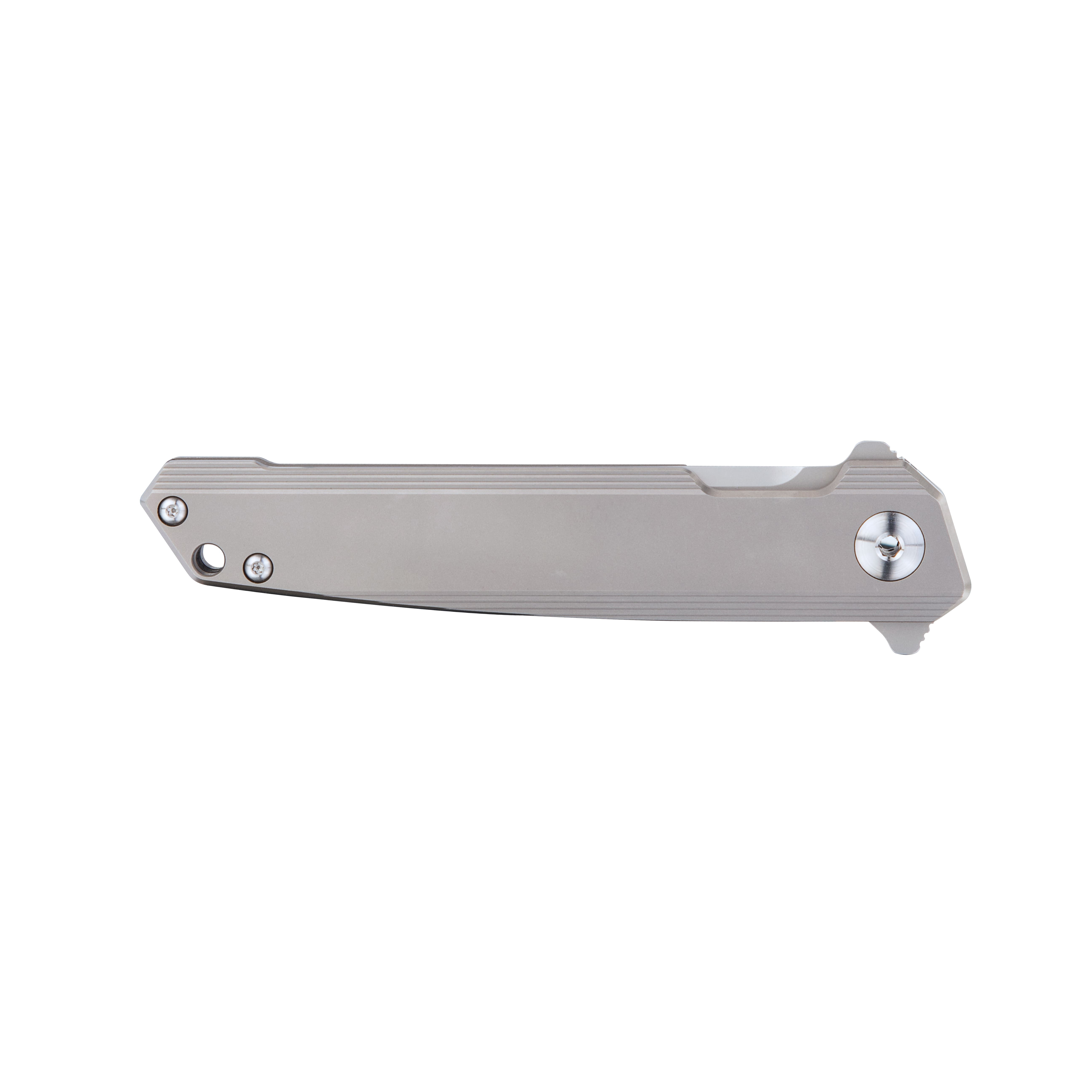Основна частина руків’я, довжина якого досягає 122 мм, виготовлена з титану ТС4 з ідеально гладкою, відполірованою поверхнею. Титан відрізняється низькою питомою вагою, що позитивно відбивається на вазі всього ножа, що складає 109 грамів. З правого боку руків’я є металева кліпса. Вона виготовлена з металу та є однопозиційною.