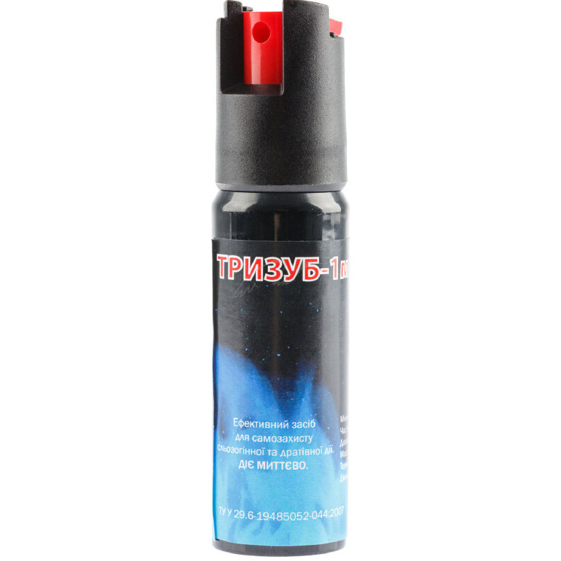Вироби "Тризуб-1м" призначені для використання для використання цивільними особами в якості засобу самозахисту і являють собою балони аерозольного типу, заповнені препаратом, що містить речовини сльозоточивої і дратівної дії (іррітанти). Препарат впливає "конусом" аерозольного хмари, він ефективний при застосуванні як проти осіб, що знаходяться в стані алкогольного сп'яніння, так і проти собак. Вироби є однофункціональними, невідновлюваними і неремонтіруемимі. Застосовуваний склад не руйнує озоновий шар. Виріб сертифікований. Діюча речовина-капсаїцин.
