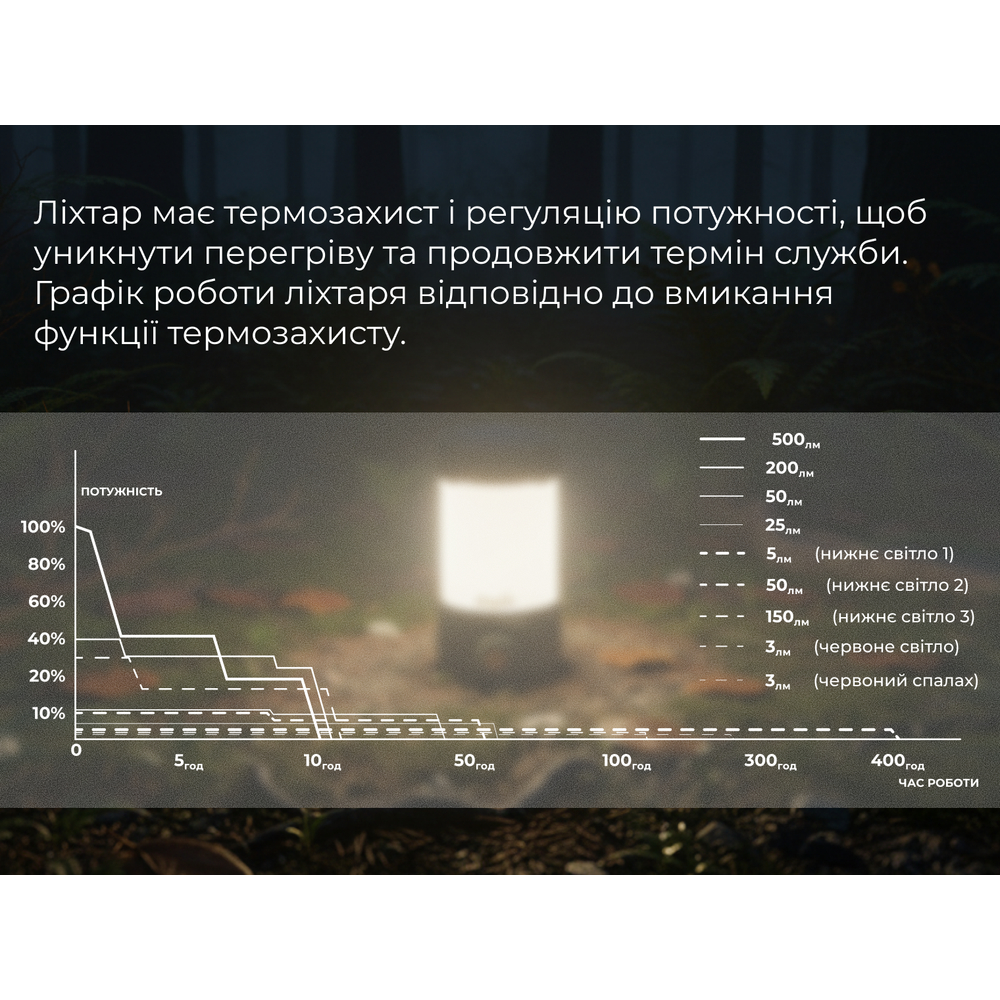 Замість li-ion акумулятора з комплекту допускається використання джерела живлення 18650 з лінійки ARB-L18 за наявності спеціального тримача.