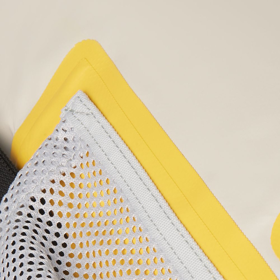 У виробництві рюкзака використано щільний поліестер, стійкий до розриву та несприйнятливий до розтягування. Ці властивості поліестеру посилює ПВХ покриття, що підвищує міцність матеріалу.