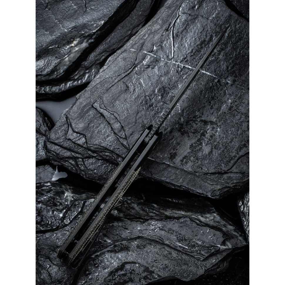 Однією з характерних рис моделі є обробка клинка black stonewash, яка робить поверхню матовою, приховуючи відбитки пальців.