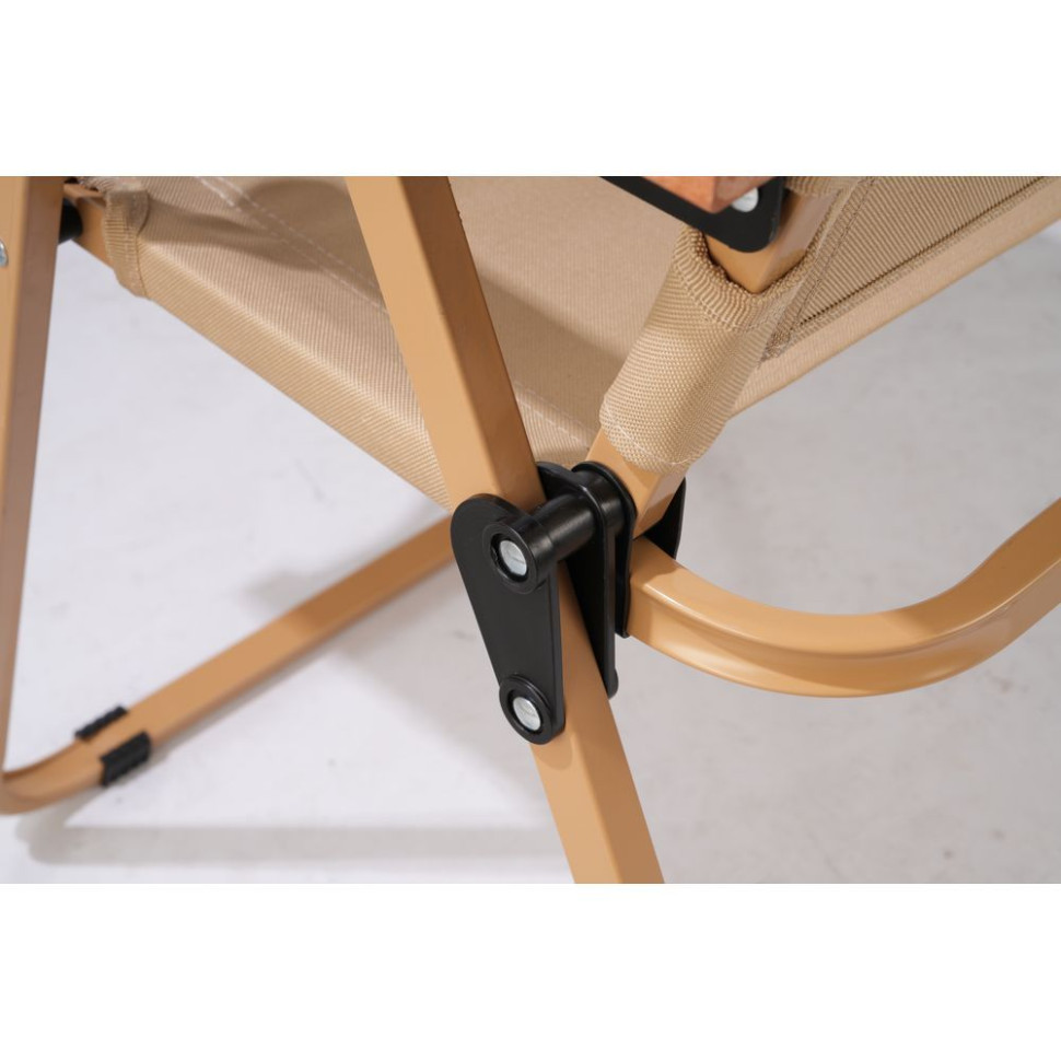 Модель розкладається подібно до простого шезлонга, досягаючи в розмірах 62 х 43 х 52 см. Висота від підлоги до сидіння становить 29 см. У конструкції передбачені підлокітники. Після використання рекомендується стежити за чистотою конструкції — у такий спосіб вдасться зберегти початковий вигляд виробу на весь експлуатаційний термін.