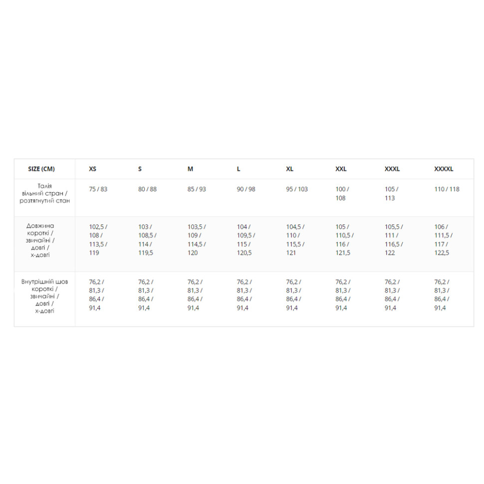 Основний матеріал — тканина NyCo, яка є однією з найміцніших на ринку. До її складу входить бавовна та нейлон, внаслідок чого витримується оптимальний баланс між повітропроникністю та міцністю виробу. Штани ефективно протистоять появі зачіпок та розривів, водночас сохнуть набагато швидше, ніж одяг зі 100% бавовни.