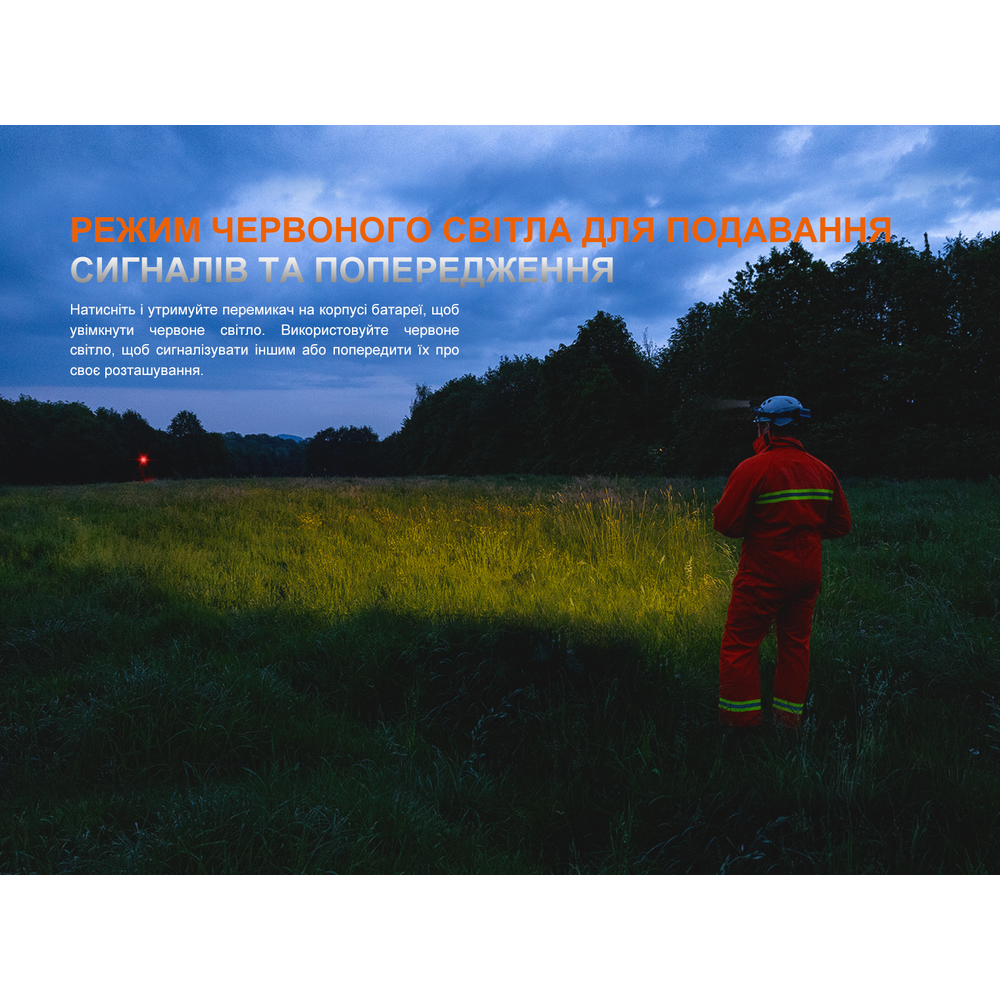 Налобний ліхтар Fenix HP35R SAR, зарядний кабель USB Type-C, подовжувач, 2 утримувачі для кабелю, інструкція користувача, гарантійний талон.