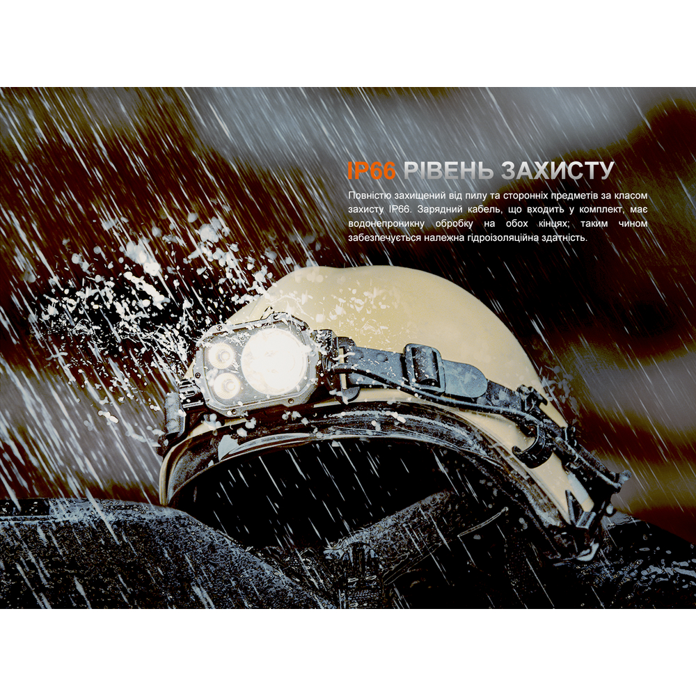 Алюмінієвий корпус ліхтаря несприйнятливий до іржі та не боїться падінь з висоти 2 м. Попадання під прямий струмінь води та робота в негоду також не є проблемою для цієї моделі — її герметичність на рівні IP66 гарантує, що всередину не потраплять ані волога, ані пил незалежно від умов експлуатації.